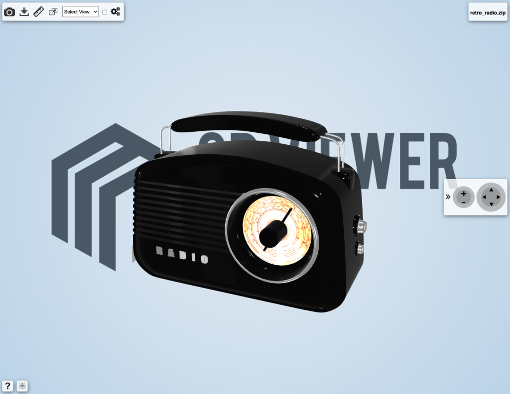 You can perform many actions with your glTF file, like rotating, zooming, measuring, and more. You can also take high resolution screenshots, add annotations and comments, and embed your 3D model in other websites and apps.